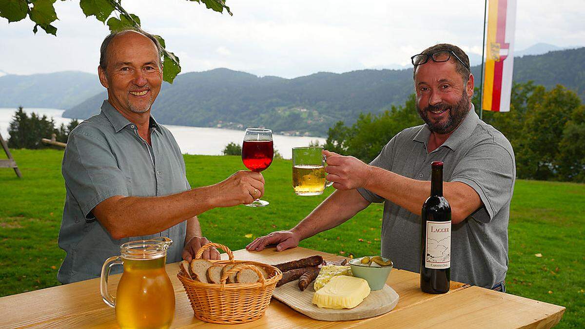 Wir, Harald Lagger vom Weinhof Lagger und Gustl Unterlerchner von der Buschenschenke Höfler, heißen unsere Gäste an der Singolo Strato zu Millstatt herzlich Willkommen.